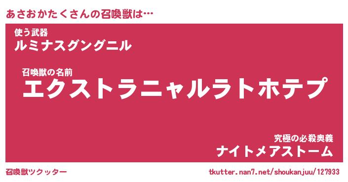 | ヒーロー風カッコイイあだ名 | 『スーパーアサオカタク』『幻影騎士アサ』 |