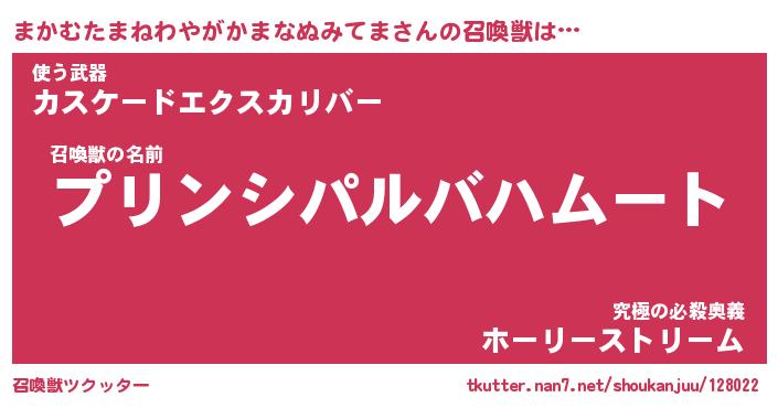 | 女子向けラノベタイトル風あだ名 | 『まかむたまねわやがかまなぬみてま姫と円卓の騎士』 |