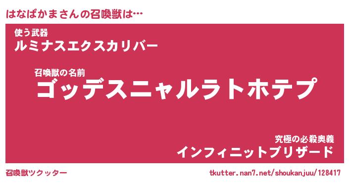 | ヒーロー風カッコイイあだ名 | 『スーパーハナバカマ』『幻影騎士ハナ』 |