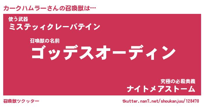 | 男性向けラノベタイトル風あだ名 | 『カークハムラーアートオンライン』 |
