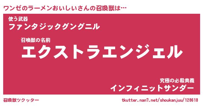| ヒーロー風カッコイイあだ名 | 『スーパーワンゼノラーメンオイシイ』 |