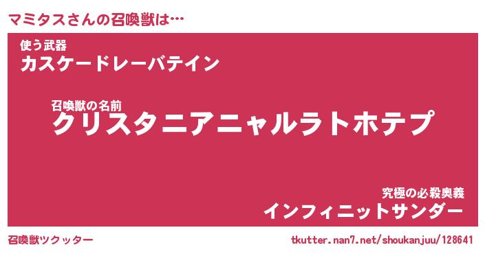 | 意味不明あだ名 | 『ペロリンマミタス』『永久保存マミタス』 |