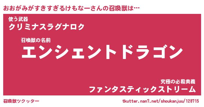| 伝説のあだ名 | 『伝説の竜騎士おおがみがすきすぎるけもなー』 |