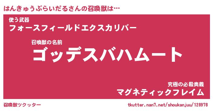 | 女子向けラノベタイトル風あだ名 | 『はんきゅうぶらいだる姫と円卓の騎士』 |