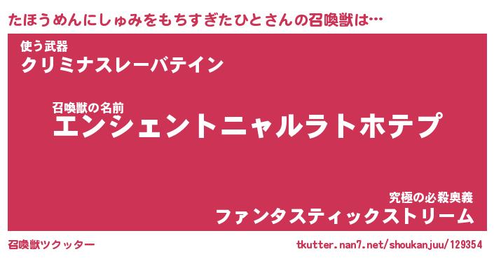 | 胡散臭い通販商品みたいなあだ名 | 『必ず成功する霊験あらたかなお札…その名も「たほうめんにしゅみをもちすぎたひと」』 |