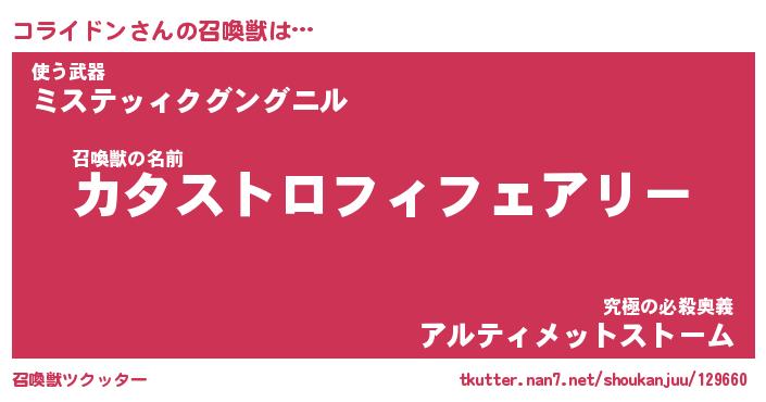 | ファンタジー風あだ名 | 『コラフェル』『エターナルコライドンー』 |