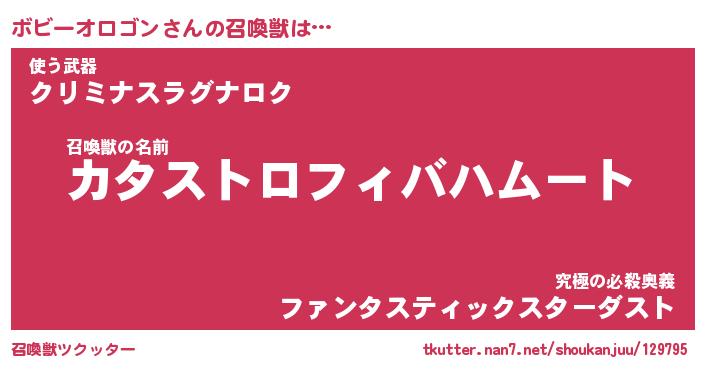 | ファンタジー風あだ名 | 『ボビフェル』『ファントムボビス』 |