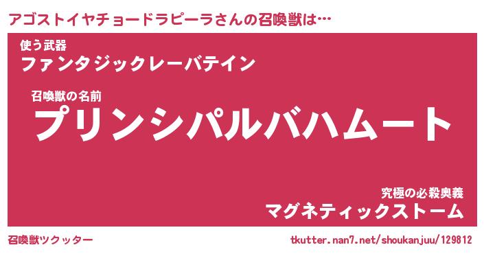 | 女子向けラノベタイトル風あだ名 | 『アゴストイヤチョードラピーラ姫と円卓の騎士』 |