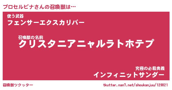 | 伝説のあだ名 | 『封印されしスナイパープロセルピナ』 |