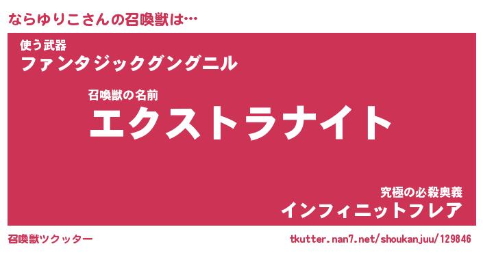| ヒーロー風カッコイイあだ名 | 『スーパーナラユリコ』『銀牙騎士ナラ』 |