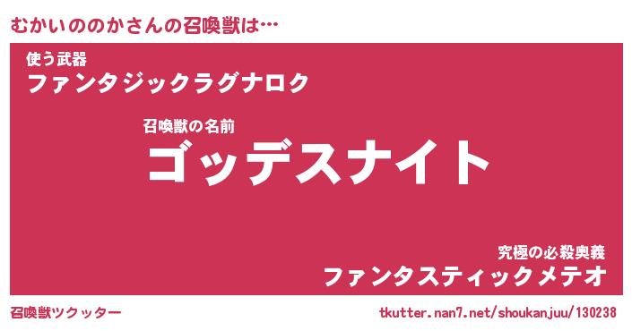 | 女子向けラノベタイトル風あだ名 | 『むかいののか姫と円卓の騎士』 |