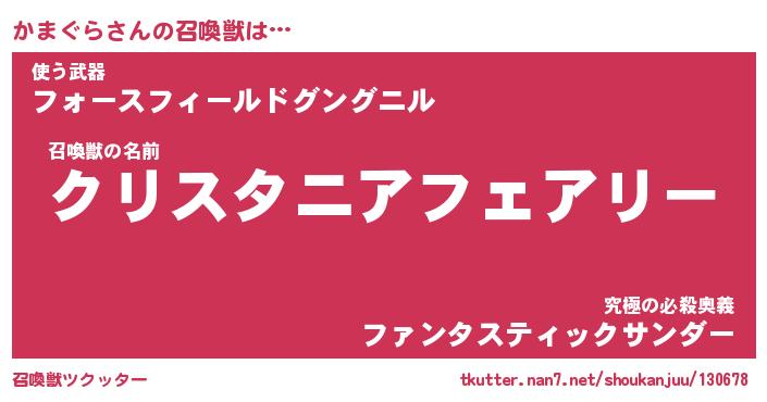 | ファンタジー風あだ名 | 『カマフェル』『エターナルカマグラー』 |