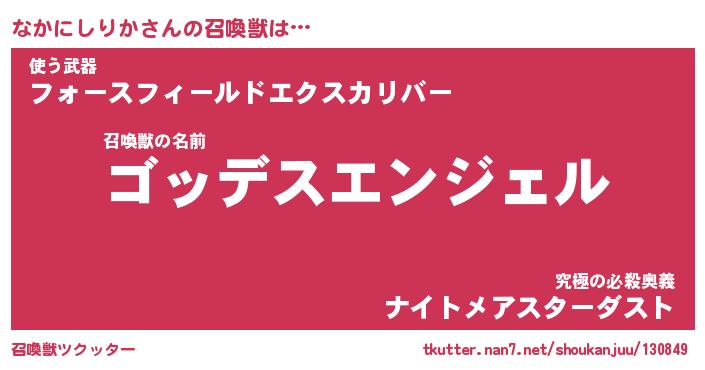 | 女子向けラノベタイトル風あだ名 | 『なかにしりか姫と円卓の騎士』 |