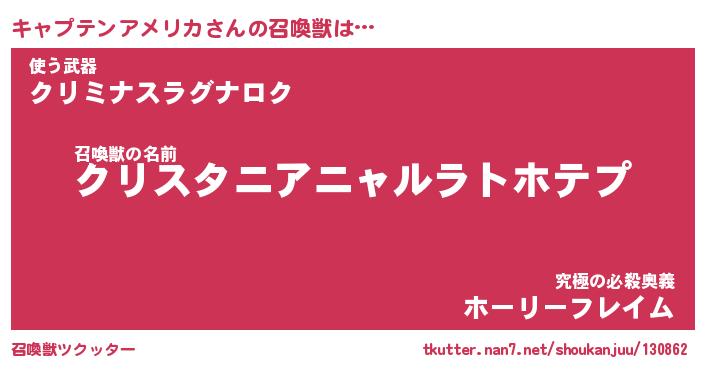 | 女子向けラノベタイトル風あだ名 | 『誰かこのキャプテンアメリカを説明してください! ~契約から始まるウェディング~』 |