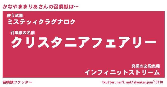 | 胡散臭い通販商品みたいなあだ名 | 『億万長者になれる水晶球…その名も「かなやままりあ」』 |
