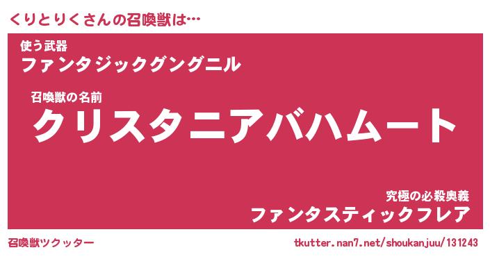 | ヒーロー風カッコイイあだ名 | 『スーパークリトリク』『天弓騎士クリ』 |