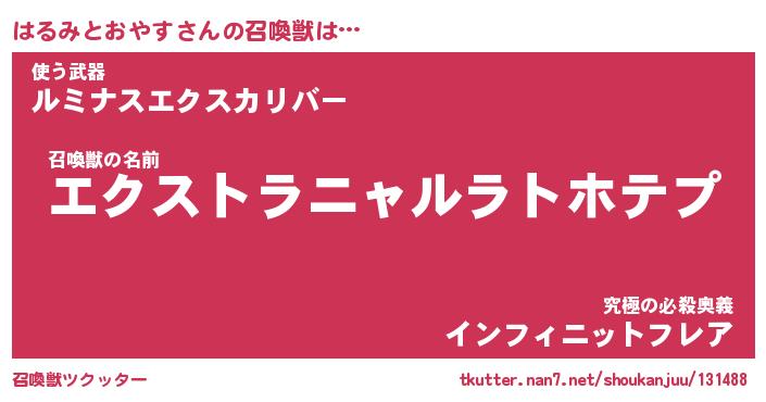 | 伝説のあだ名 | 『伝説のスナイパーはるみとおやす』 |