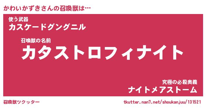 | ヒーロー風カッコイイあだ名 | 『スーパーカワイカズキ』『幻影騎士カワ』 |