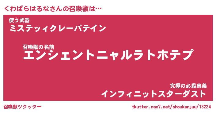 | ヒーロー風カッコイイあだ名 | 『スーパークワバラハルナ』 |