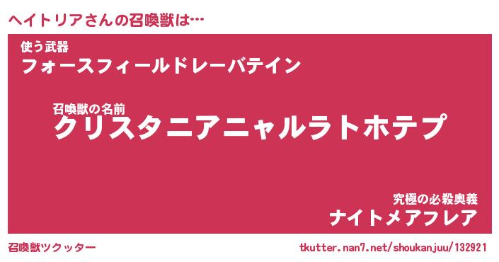 | ポケモン風あだ名 | 『ヘイチュウ』『ヘイトダネ』 |