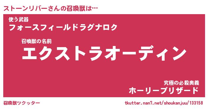 | ツイッター | ストーンリバーさんのツイッターID『renkon_nyan』 |