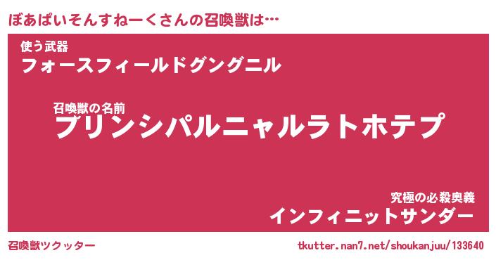 | 伝説のあだ名 | 『不死鳥のスナイパーぼあぱいそんすねーく』 |