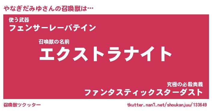| ヒーロー風カッコイイあだ名 | 『スーパーヤナギダミユ』『天弓騎士ヤナ』 |
