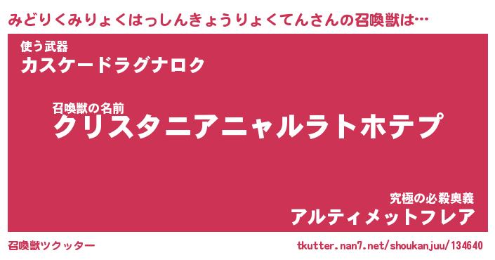 | 男性向けラノベタイトル風あだ名 | 『ミドリクミリョクハッシンキョウリョクテンアートオンライン』 |