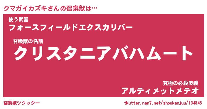 | ヒーロー風カッコイイあだ名 | 『スーパークマガイカズキ』 |