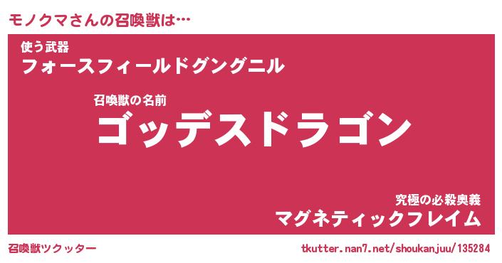 | ファンタジー風あだ名 | 『モノフェル』『エターナルモノクマー』 |