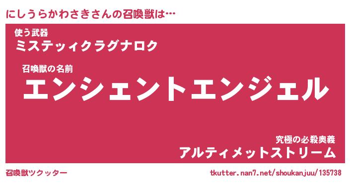 | 男性向けラノベタイトル風あだ名 | 『にしうらかわさきの憂鬱』 |