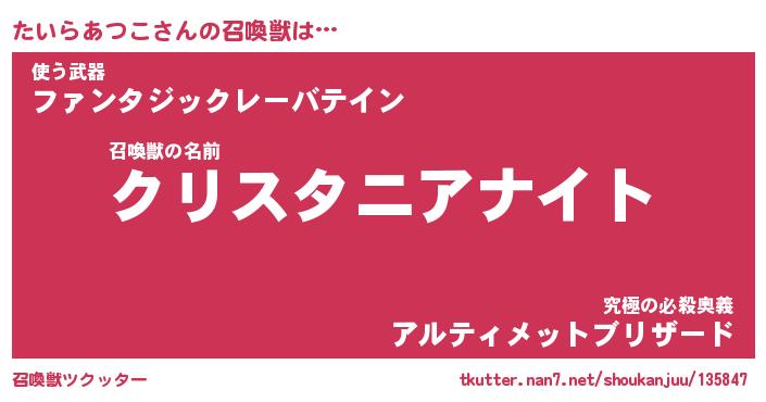 | ヒーロー風カッコイイあだ名 | 『スーパータイラアツコ』『銀牙騎士タイ』 |