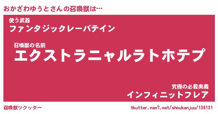 | 胡散臭い通販商品みたいなあだ名 | 『必ず成功する霊験あらたかなお札…その名も「おかざわゆうと」』 |
