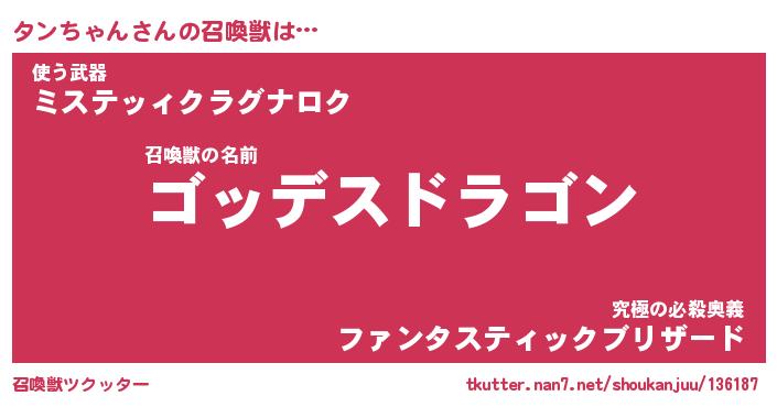 | ファンタジー風あだ名 | 『タンフェル』『エターナルタンチャンー』 |