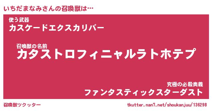 | ヒーロー風カッコイイあだ名 | 『スーパーイチダマナミ』『魔戒騎士イチ』 |