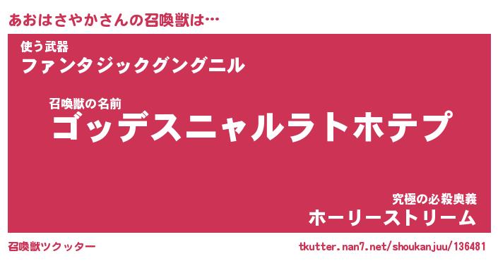 | ファンタジー風あだ名 | 『アオフェル』『ファントムアオス』 |