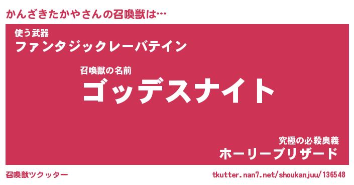 | 女子向けラノベタイトル風あだ名 | 『かんざきたかや姫と円卓の騎士』 |