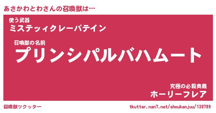 | 女子向けラノベタイトル風あだ名 | 『あさかわとわ姫と円卓の騎士』 |