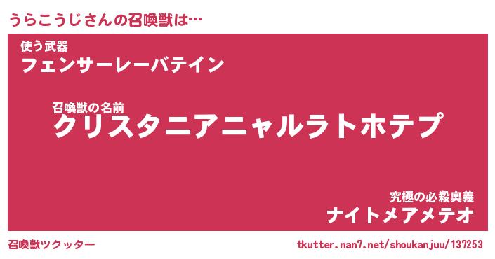 | ファンタジー風あだ名 | 『ウラフェル』『エターナルウラコウジー』 |
