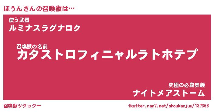| ファンタジー風あだ名 | 『ホウフェル』『エターナルホウンー』 |