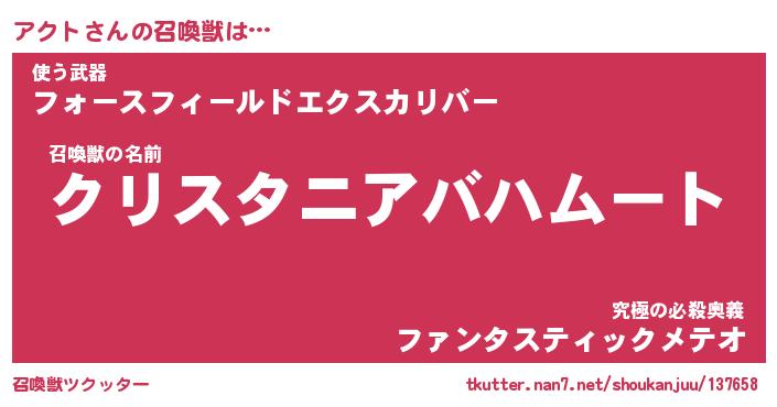 | ヒーロー風カッコイイあだ名 | 『スーパーアクト』『ウルトラアクトマン』 |