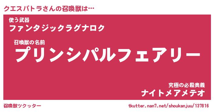 | 女子向けラノベタイトル風あだ名 | 『クエスパトラ姫と円卓の騎士』 |