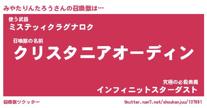 | 女子向けラノベタイトル風あだ名 | 『誰かこのみやたりんたろうを説明してください! ~契約から始まるウェディング~』 |