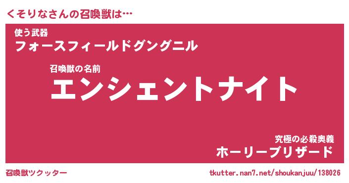 | 伝説のあだ名 | 『伝説の傭兵くそりな』 |