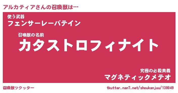 | ツイッター | アルカティアさんのツイッターID『fukuyoka_kun』 |