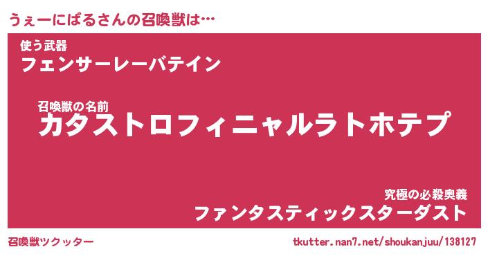 | ヒーロー風カッコイイあだ名 | 『スーパーウェーニバル』『天弓騎士ウェ』 |