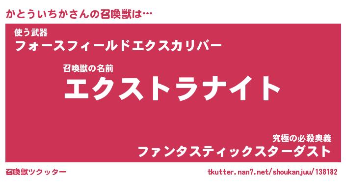 | ヒーロー風カッコイイあだ名 | 『スーパーカトウイチカ』『天弓騎士カト』 |