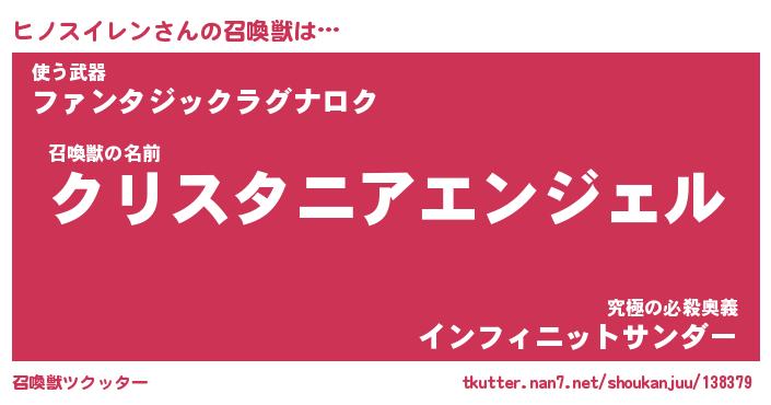 | ヒーロー風カッコイイあだ名 | 『スーパーヒノスイレン』『幻影騎士ヒノ』 |