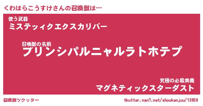 | 胡散臭い通販商品みたいなあだ名 | 『モテモテ間違いなし霊験あらたかなお札…その名も「くわはらこうすけ」』 |