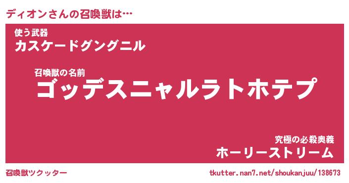 | ポケモン風あだ名 | 『ディチュウ』『ディオダネ』 |